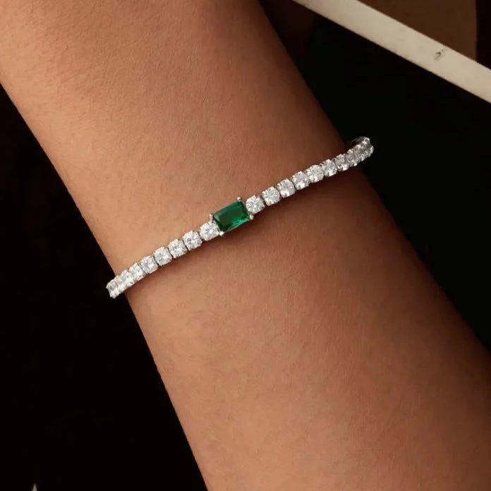 Green Cubic Zirconia Tennis Bracelet Classic Adjustable