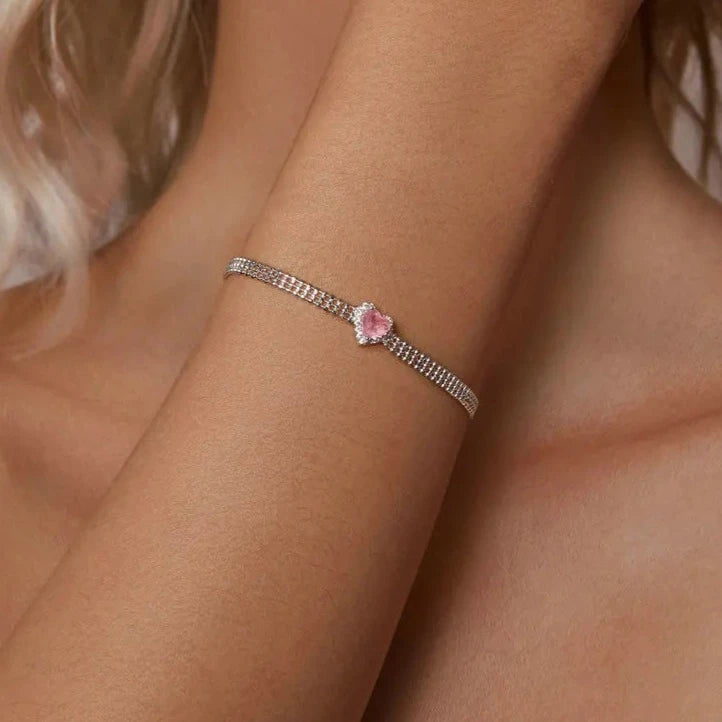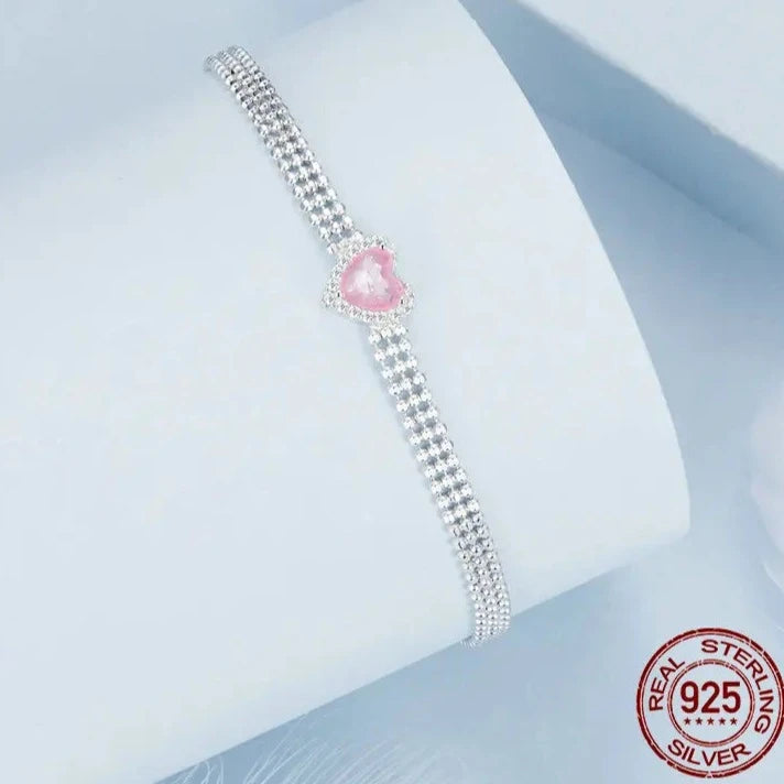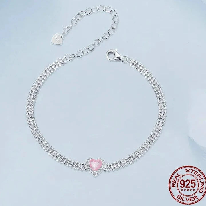 Model Number: 925 Sterling Silver Ice Pink Heart Chain Bracelet